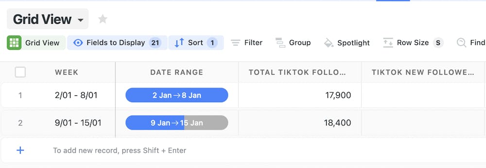 I want to calculate the difference between two lines, here 18400 - 17900, to find the new followers each week. is it possible to make a calculation between the actual line and the previous one ? And applicable for all the futur lines (weeks) so I can see the evolution ?