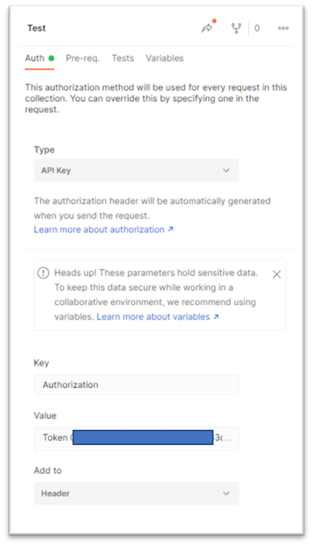 Value: “Token [API Key]” ← put a space between Token and the id!