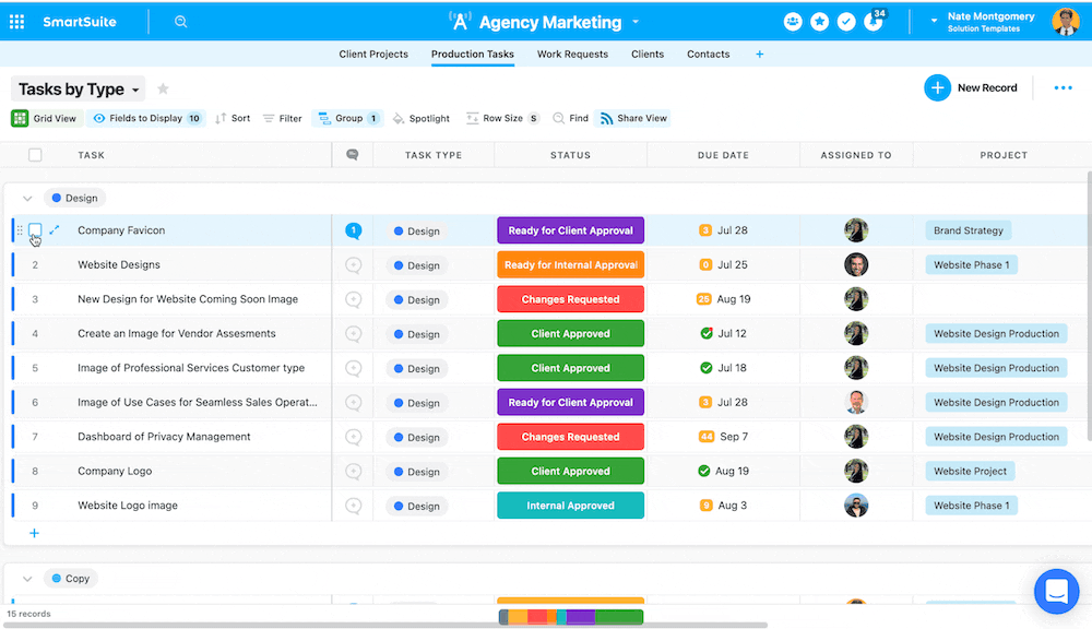 In Grid View, you can select multiple records and perform an action on all of the selected records. This enables you to quickly pick out certain records in your data that you want to take action with, instead of working one by one with all of the data at once.
