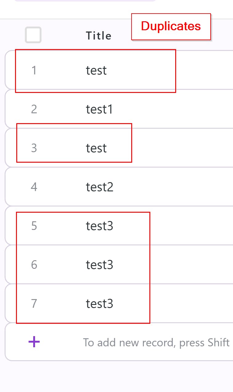 For now I've tried to find an easy way to identify duplicate rows. The suggestion given by help was to group the row and then I will be able to see groups of the column greater than 1. It worked in general, but I had to scroll to see if there was a group more than one because this approach doesn't allow you to court the counts of the group or anything like that.